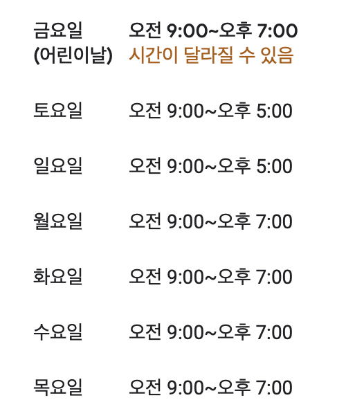 토요일, 일요일 :: 오전 9시 - 오후 5시